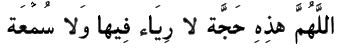 (O Allah this is a Hajj, there being no ostentation in it or hypocrisy).(17)