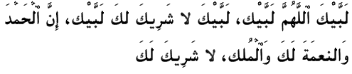 (i) labbaikallaahumma labbaika labbaika laa shareeka laka labbaika-innal hamda wan na'mata laka wal mulka-la shareeka laka